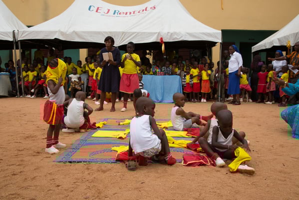 Im Waisenhaus Möbele: bei Schwester Scholastica, liefen die Vorbereitungen für das Schlussexamen auf Hochtouren. Im Hinterhof kochten die Lehrer das Mittagessen für die Kinder und deren Eltern. Es war total spannend, in die Töpfe zu gucken. Es gab Reis mit Fleisch an einer würzigen Sauce.